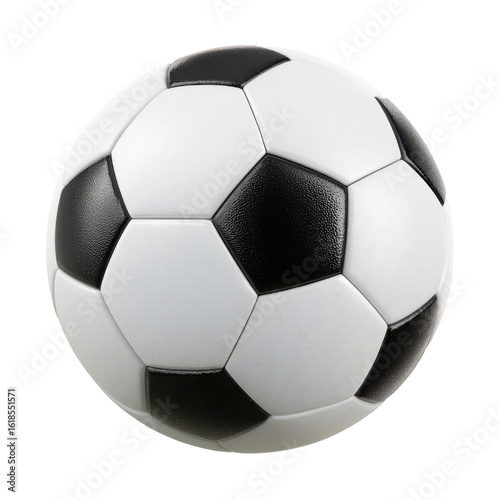 © Majnu, Obraz premium Classic black and white soccer ball with textured panels sport game, Isolated On White, Png Transparent, Cut Out