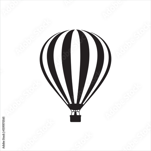Fototapeta premium Classic black and white striped hot air balloon with basket isolated on white background