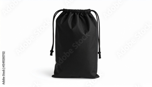 © Nashihal, Naklejka premium Classic black drawstring bag mockup – gym, sports, travel pack template.