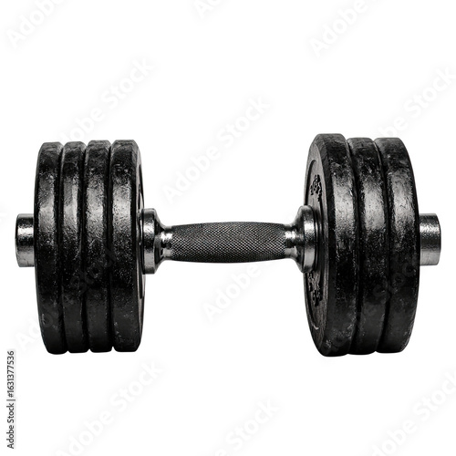 Fototapeta premium Classic Black Dumbbell Isolated on White Background for Fitness and Exercise Promotion