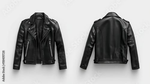 © Katsiaryna, Naklejka premium Classic black leather jacket mockup in versatile design for modern fashion