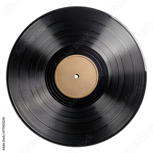© Faizan, Obraz premium Classic black vinyl record with glossy surface, isolated on transparent background, detailed grooves.