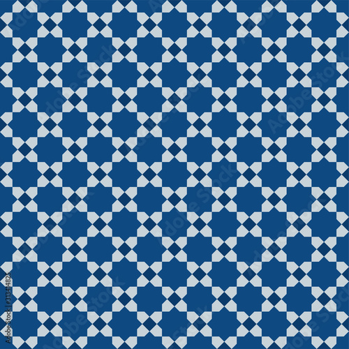 © almagami, Fototapeta premium Classic Blue Ornate Seamless Vector Pattern of Moorish Tile Decorations. Tileable mosaic background in Islamic style.