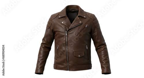 © Creativa, Naklejka premium Classic Brown Leather Biker Jacket Isolated on White Background