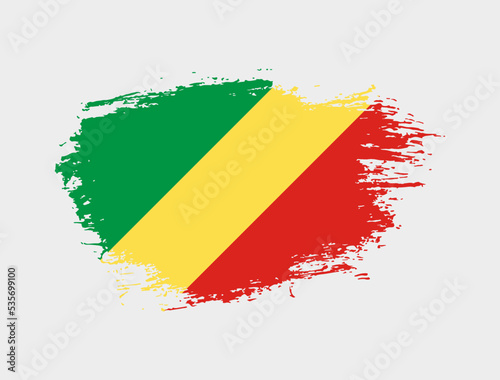 Obraz premium Classic brush stroke painted national Republic of the Congo country flag...
