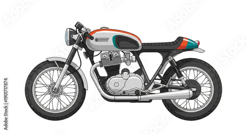 © holik, Obraz premium Classic Cafe Racer Motorcycle Side View Isolated.
