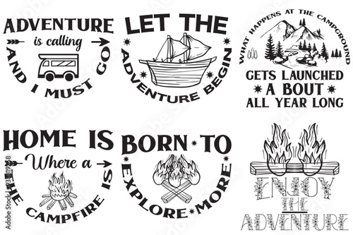 Fototapeta premium Classic Camping And Dog Calligraphy, Phrases Bundle Vector Illustration for...