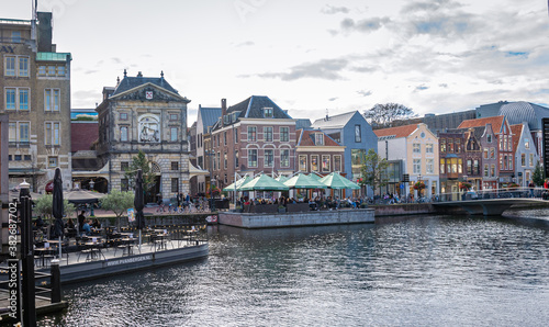© Menyhert, Naklejka premium Classic canal houses and weigh house "De Waag" in the historic centre of the city of Leiden, Holland.