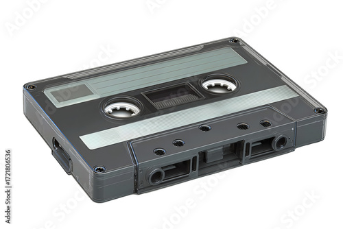 © Sawyer0, Obraz premium Classic cassette tape with translucent smoke window and subtle scuffs, isolated on transparent background.