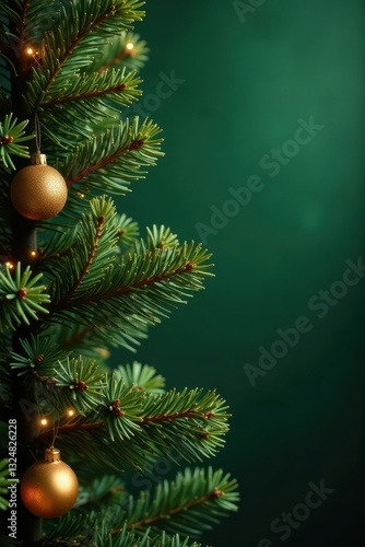 Fototapeta premium Classic Christmas evergreen boughs and gilded leaves, rich green and gold, leaves, symbol
