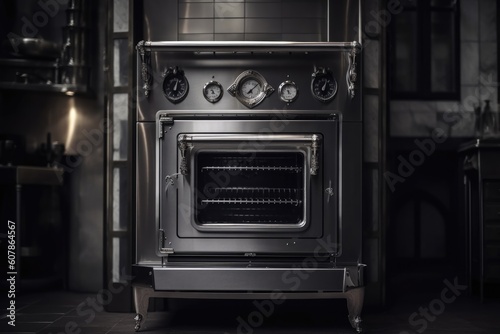 Obraz premium classic commercial oven with vintage design element, surrounded by modern steel frame, created with generative ai