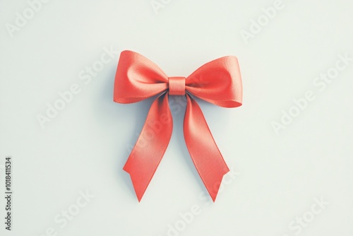 Fototapeta premium Classic 3D Red Ribbon Bow Tied in a Perfect Knot on White Surface