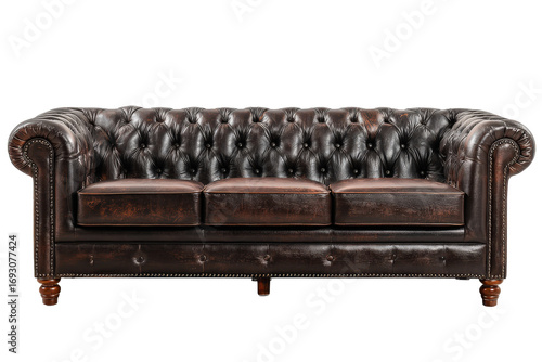 © Isolated Stock, Fototapeta premium Classic dark brown leather Chesterfield sofa isolated on white.