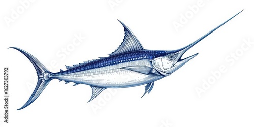 Naklejka premium Classic Etching of Marlin Fish, Intricate Details, Antique Style, Isolated Graphic