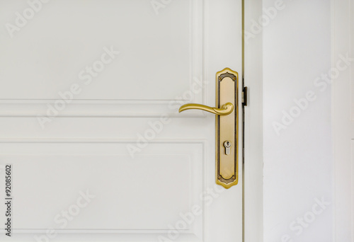 Obraz premium classic golden door handle on white door