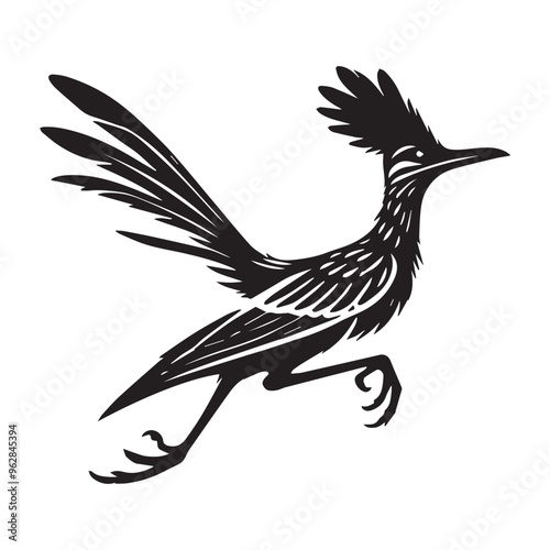 © Shineoxstock, Fototapeta premium Classic Greater Roadrunner Silhouette – Monochrome Vector Illustration