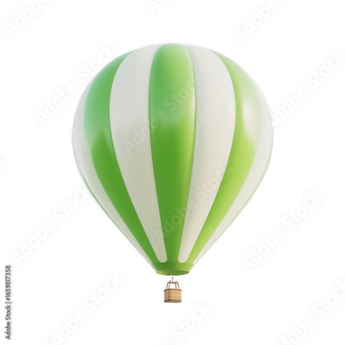 © MDKhokon, Fototapeta premium Classic green and white striped hot air balloon ready for adventure and exploration in the sky isolated on transparent background