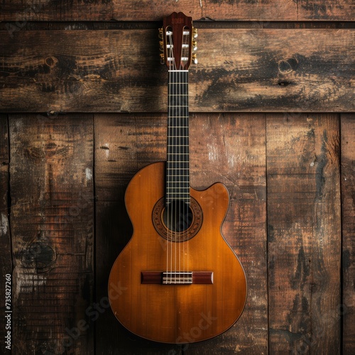 © Custom Media, Naklejka premium Classic Guitar Wood Texture on Brown Background