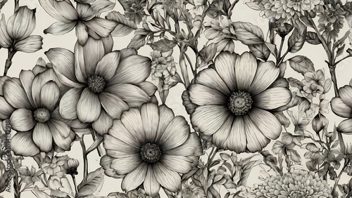 © KD99Image, Fototapeta premium Classic Hand-Drawn Floral Pattern