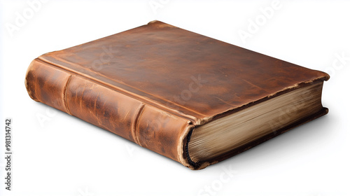 © Ihor, Obraz premium Classic Hardcover Book with Brown Leather Cover, Slightly Open, Floating on a White Background