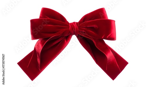 Fototapeta premium Classic holiday decoration ribbon bow oversized in velvet red with pointed ribbon ends isolated on white