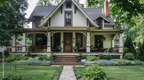 © Beer AI, Obraz premium Classic house with charming exterior and inviting front porch
