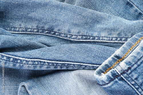© VI Studio, Naklejka premium Classic jeans texture. Denim pattern, blue jeans background.