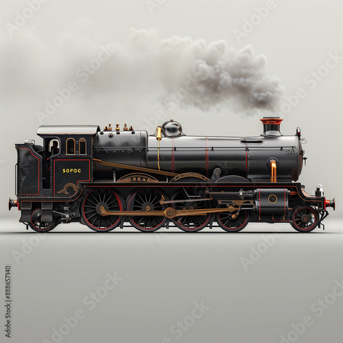 © Sekai, Naklejka premium Classic Journey: Swift Coal Black Antique Train in Side Profile View