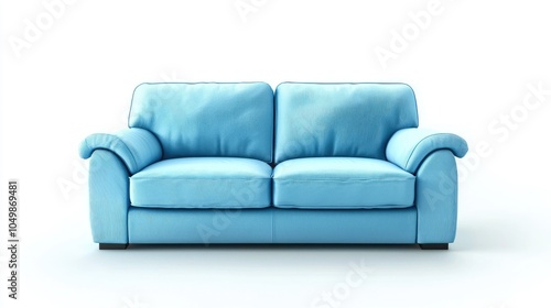 © Andrii , Fototapeta premium Classic Light Blue Sofa on White, Front Angle View