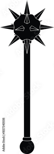 © Jharna, Naklejka premium Classic Medieval Spiked Mace Weapon Vector Illustration with Brutal Star Ball Head, Perfect for Fantasy Role-Playing Game Assets and Historical Combat Design.