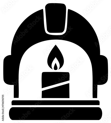 Obraz premium Classic miner's safety helmet icon featuring a lit candle symbolizing...