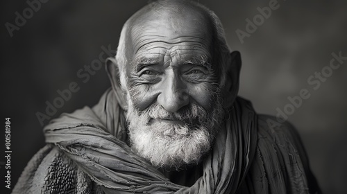 © KHF, Fototapeta premium Classic monochrome portrait of an old man smiling.