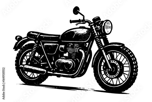 Fototapeta premium Classic Motorcycle Vector - Hand-Drawn Black and White Graphic with Distressed Texture