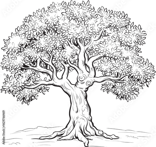 Fototapeta premium Classic Olive Tree Black Vector Logo Icon Elegant Olive Tree Black Outline Vector Art