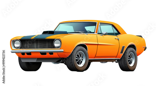 Fototapeta premium Classic orange muscle car with black stripes, showcasing powerful design and...