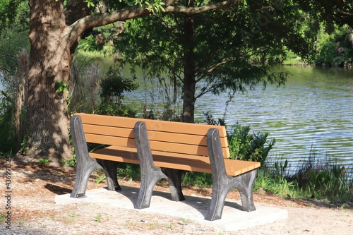 Fototapeta premium Classic Park Bench Facing Water