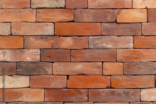 Fototapeta premium classic red brick wall background with deep rough textured surface with patches of worn mortar, vintage industrial background.