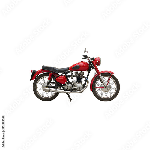 © chalindu, Fototapeta premium Classic red motorcycle viewed from the side on white background