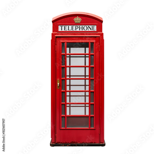 © olegganko, Obraz premium Classic Red Telephone Booth Standing Alone in a Quiet Urban Street