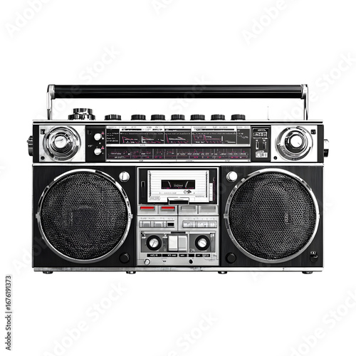 © setio ES, Obraz premium Classic Retro Boombox on Black Background: Nostalgic Audio Equipment Display