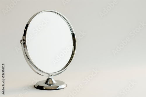 Fototapeta premium Classic Round Vanity Mirror on Stand with Reflection Isolated on White Background