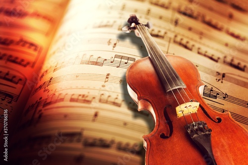 Fototapeta premium Classic sheets with music notes sign and a violin