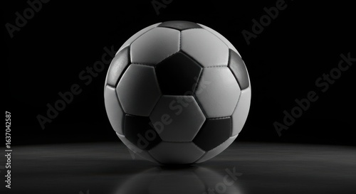 Fototapeta premium Classic Soccer Ball Black and White on Dark Reflective Surface