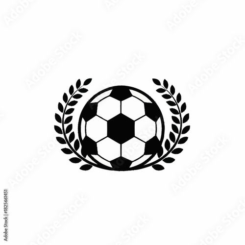 © Malikmagak, Obraz premium Classic soccer ball emblem with a victory laurel wreath.
