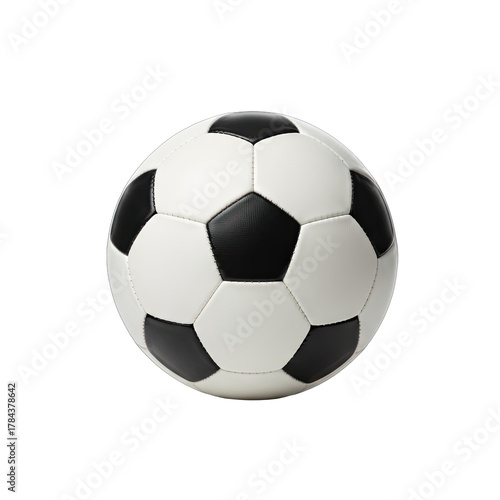 Obraz premium Classic Soccer Ball with Black and White Panels Isolated on Black Background Realistic Texture Professional Studio Lighting