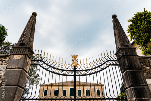 © Road Red Runner, Fototapeta premium Classic stately door with coat of arms at the entrance of an Italian villa.