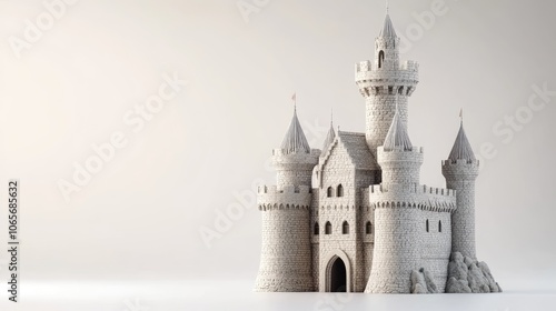 Obraz premium Classic stone castle model with minimal shadows on a white background,...