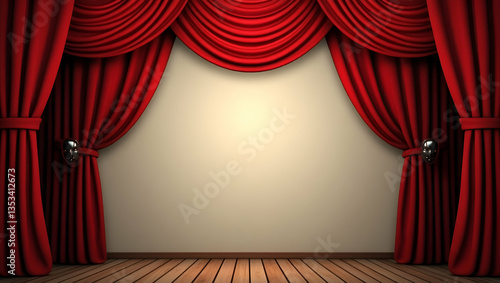 Fototapeta premium Classic Theater Masks and Stage Curtains Frame for World Theatre Day Celebration Messages