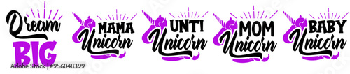 Obraz premium Classic Unicorn Bundle Calligraphic Lettering, Phrases Pack Vector...