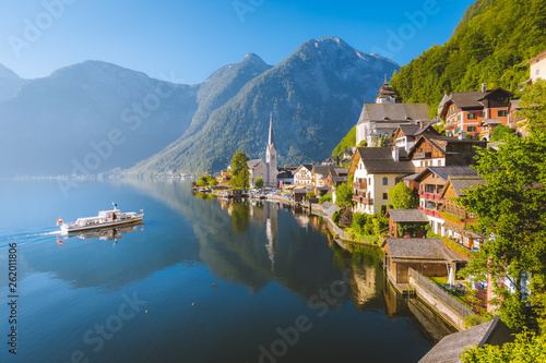 © JFL Photography, Fototapeta premium Classic view of Hallstatt with ship in summer, Austria